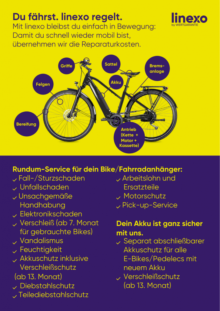 Neben unserem Werkstattservice bieten wir dir auf Wunsch einen zusätzlichen Reparatur- und Verschleißschutz über Linexo by Wertgarantie an.
